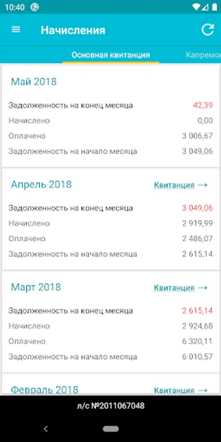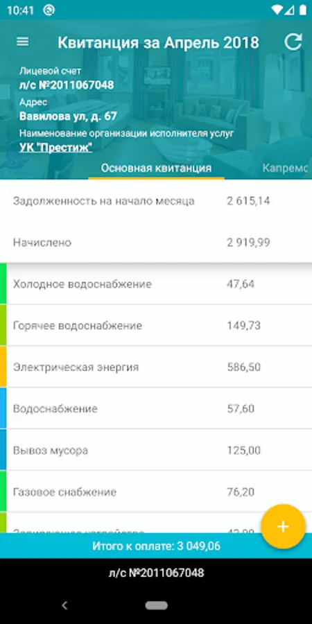 • View the current receipt for housing and communal services with a breakdown by settlement items.