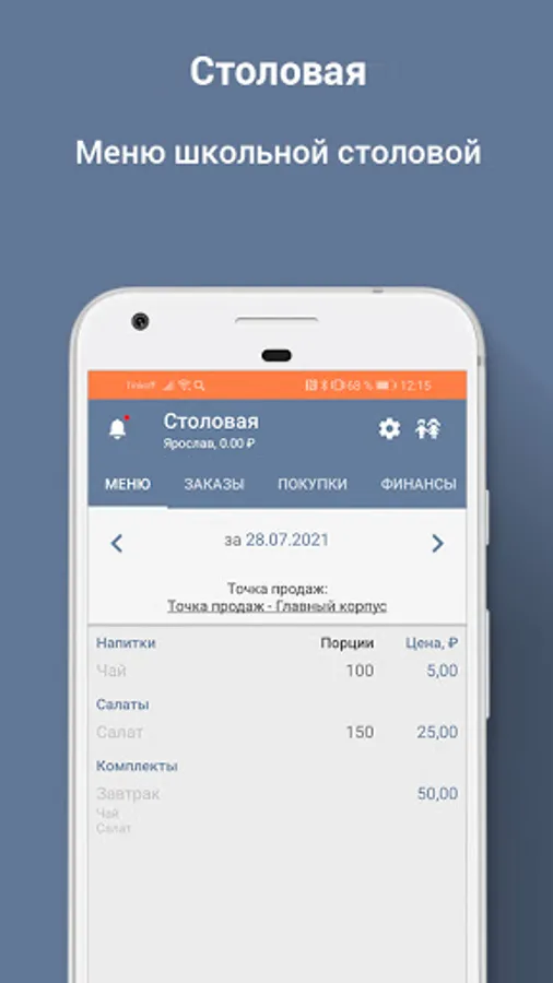 In the personal account, parents can find out the balance of their personal account, track the history of replenishment / expenses and the history of accrual of benefits, view the school canteen menu with details for each dish, and also limit the daily food spending limit.