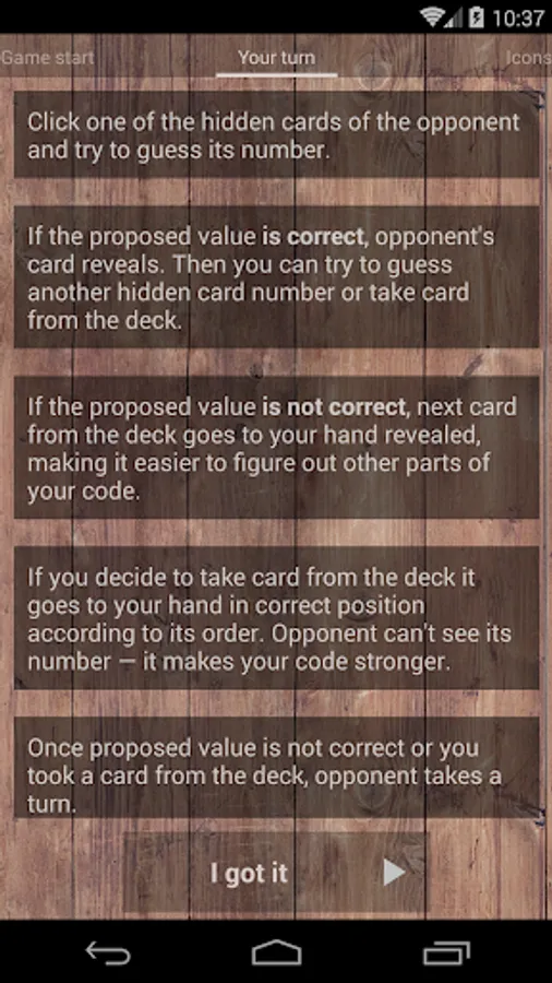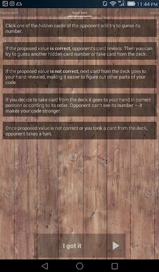 A puzzle based on the board game "Da Vinci Code" (Coda). Find out the opponent's code before he finds out yours. Use common sense, intuition and "detective" skills. You will have to fight with the computer. He plays fair and will not peek at your cards. But at the same time he is smart and does not allow superfluous mistakes. Can you beat?