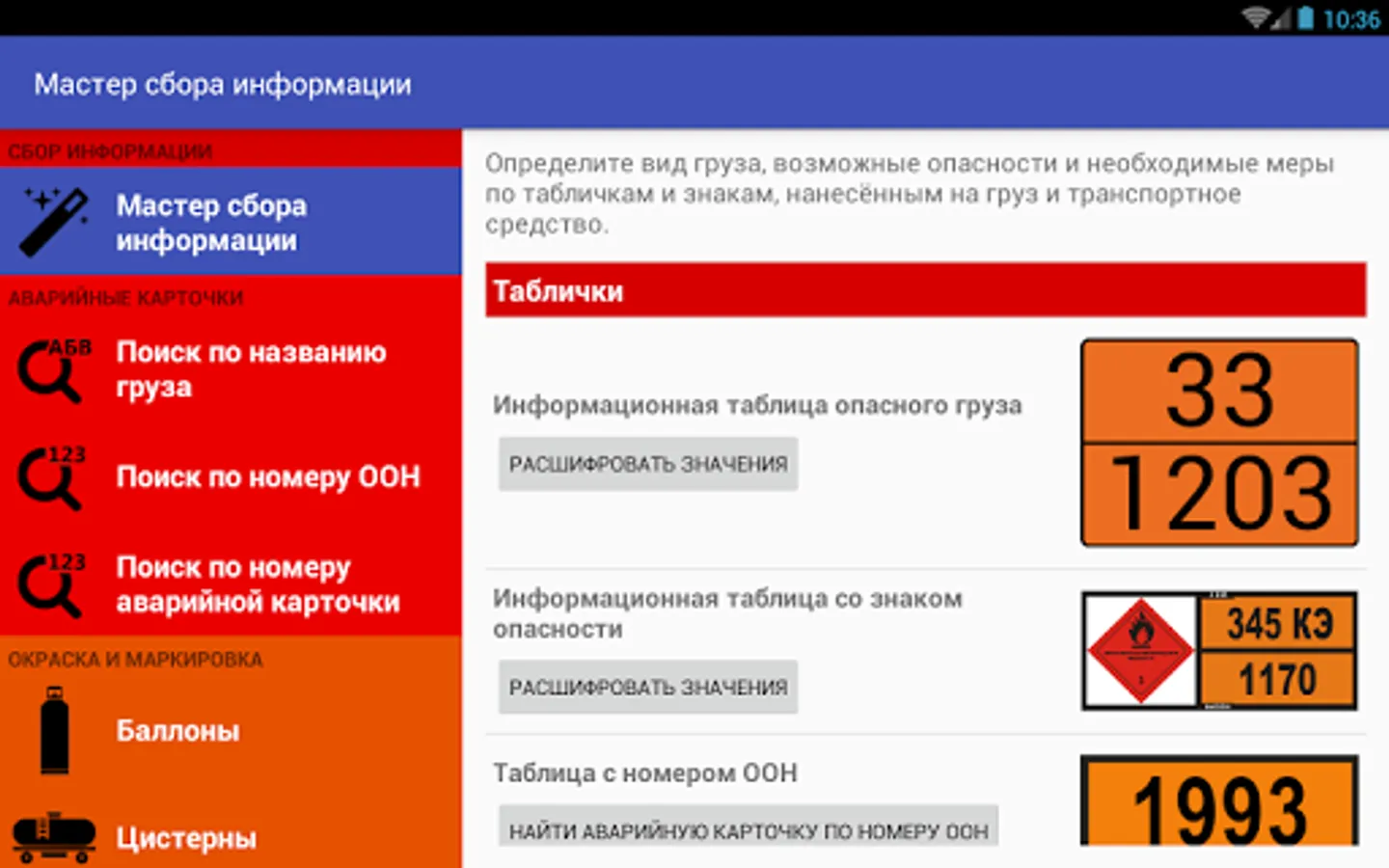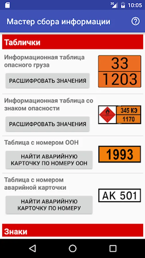- Deciphering the signs of danger and tables accompanying the cargo;