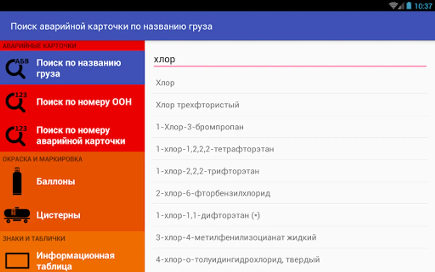 Search by name of the substance or article, the UN number, emergency card. When looking for spelling mistakes corrected and taken into account the existence of synonyms.