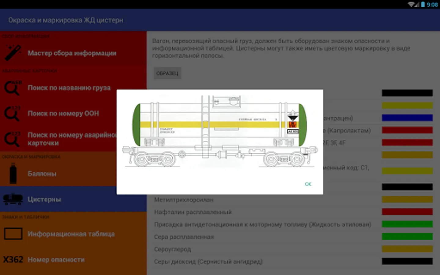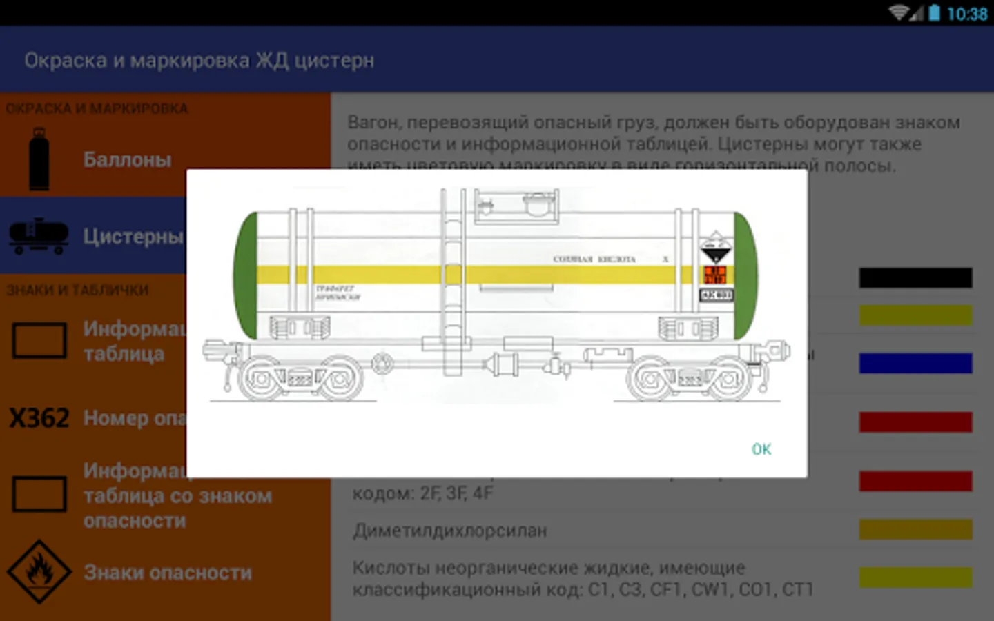 - Information on the color and labeling of containers and rail tankers;
