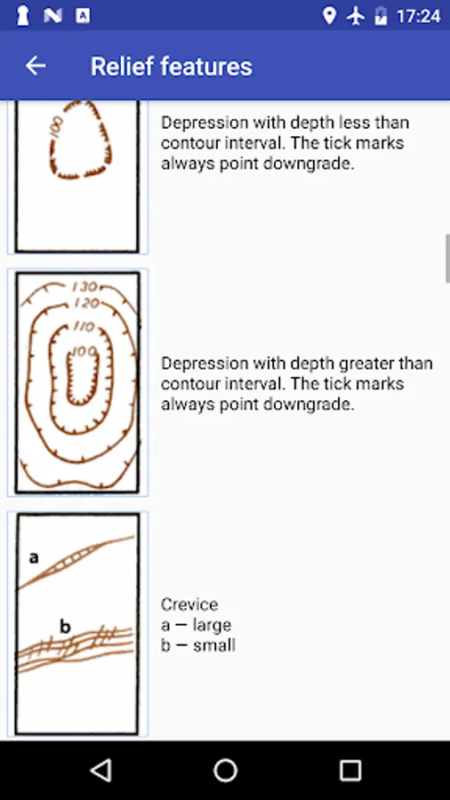 Topographic symbols are arranged by categories, such as drainage features, relief, roads etc.