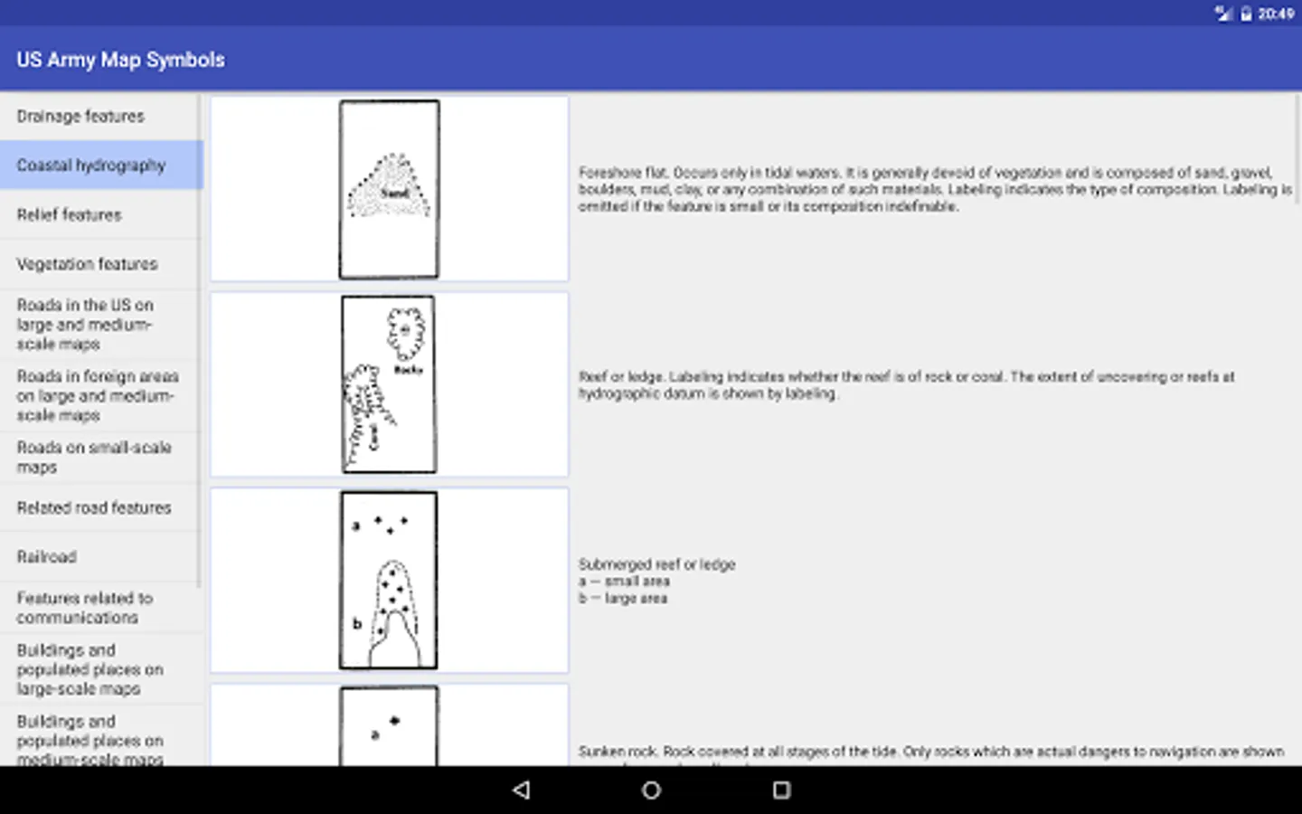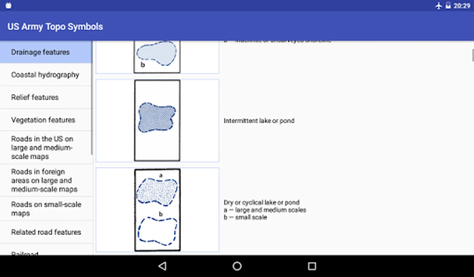 Symbols given in this application are in general agreement with those employed by the British Army, the Canadian Army, the Aeronautical Chart and Information Service of the US Air Force, the Hydrographic Office of the US Navy, the US Coast and Geodetic Survey, the US Forest Service, the US Geological Servey and others.