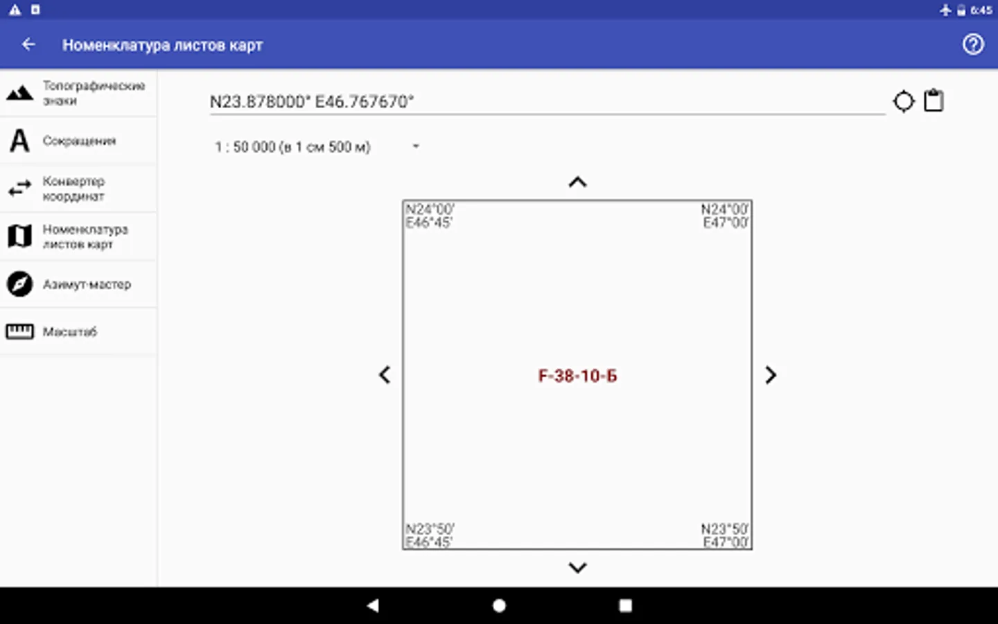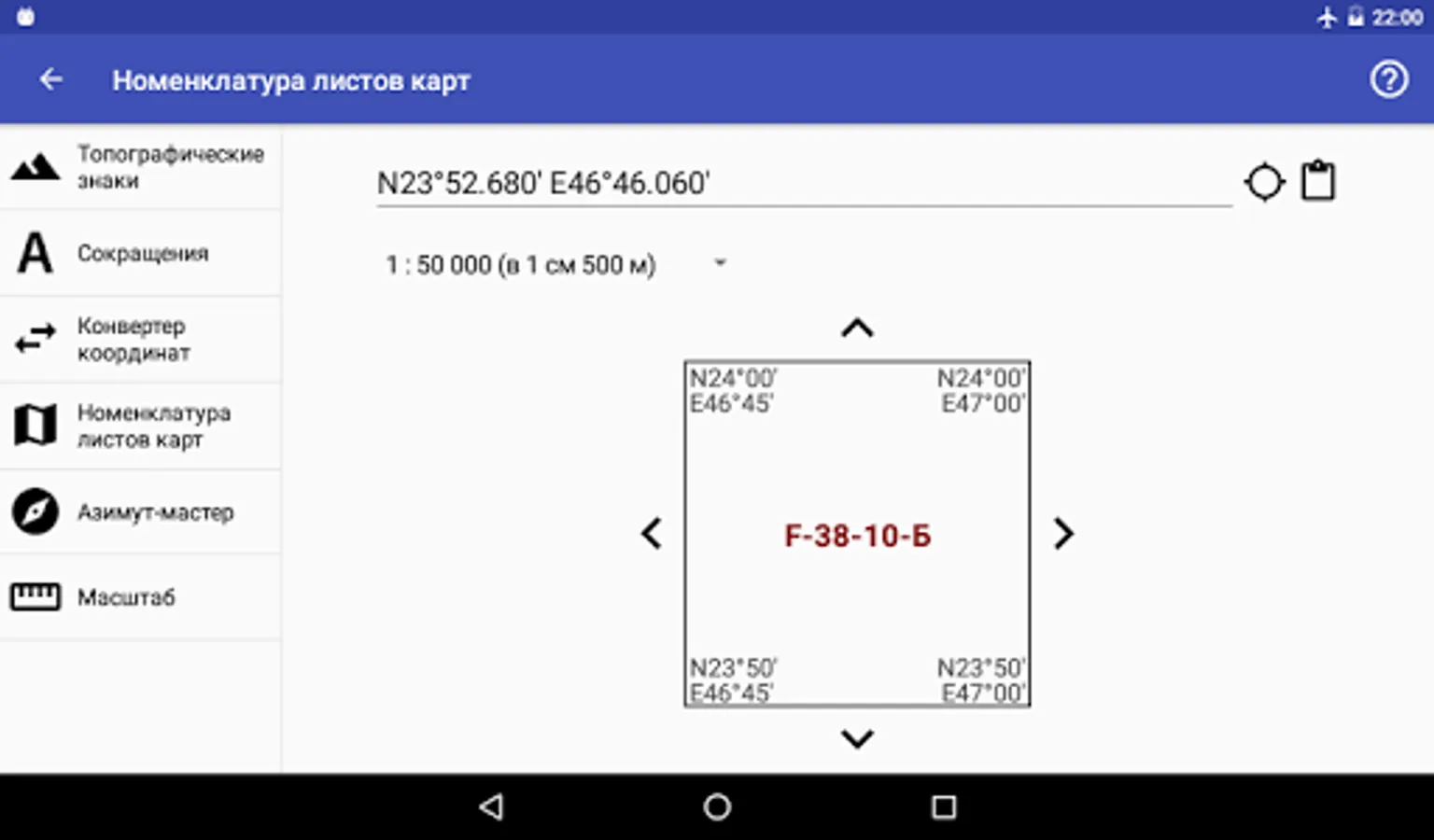 - Caller topographic map sheet in razgrafki system and nomenclature of topographic maps the coordinates point of interest;