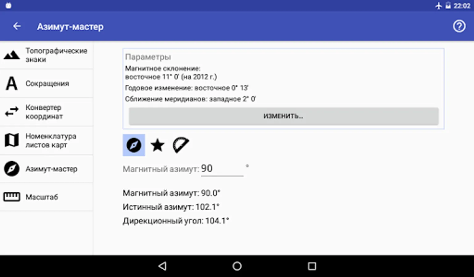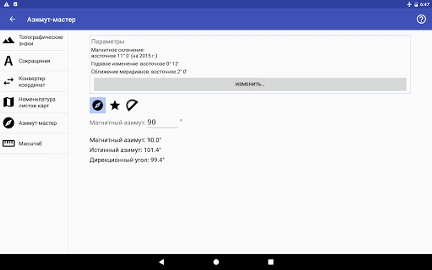 - Calculation of the magnetic azimuth of the true azimuth and azimuth;