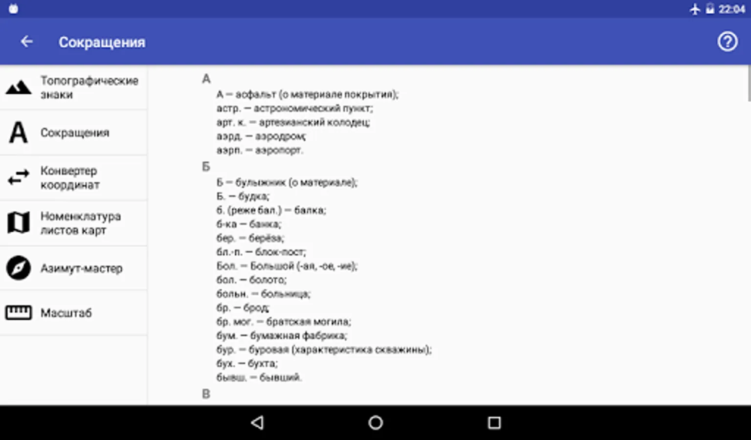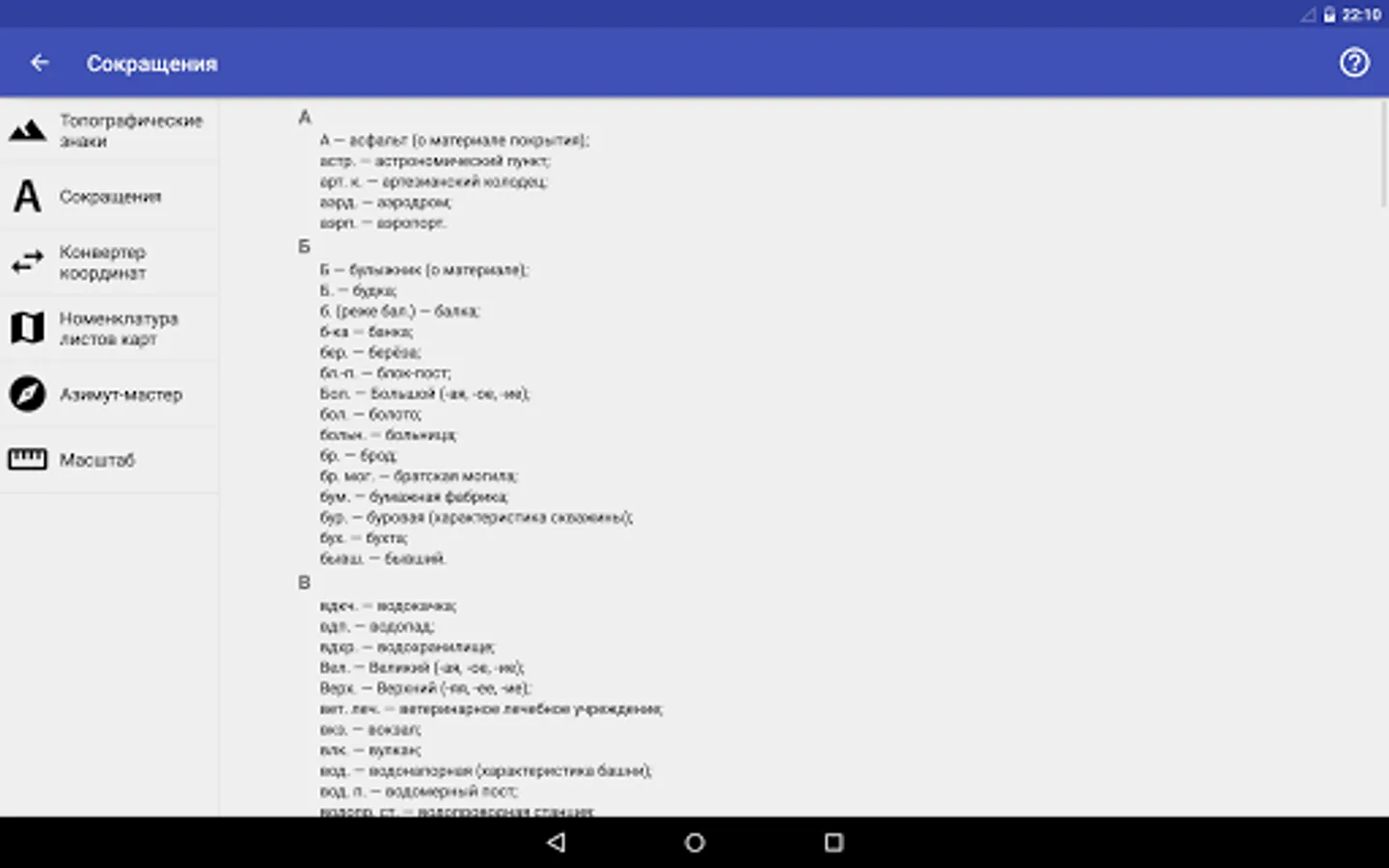 - Alphabetical list of abbreviations and acronyms found on topographic maps;