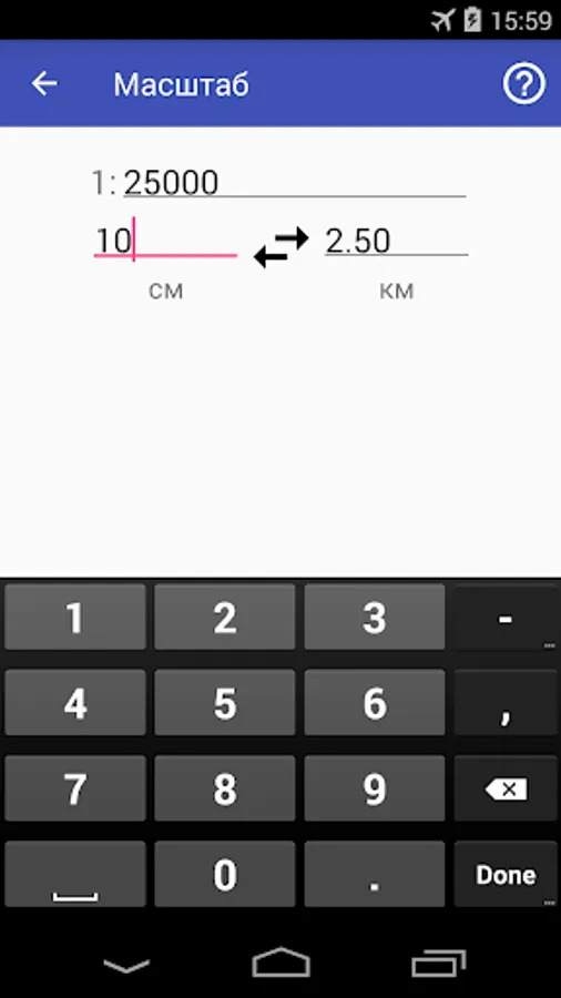 - Translation distances measured on a map (CM), in real values (KM) and vice versa.