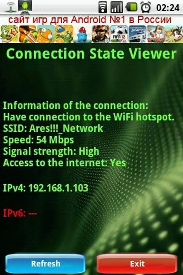 Simple app which shows the state of the current connection. Please help me to improve my app, leave a comment!
