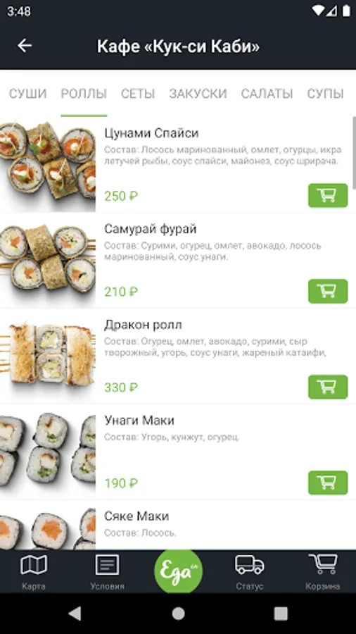 Application for an order of delicious dishes to suit all tastes of the best institutions of Saratov.