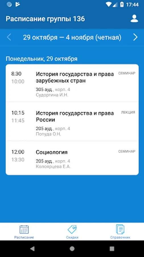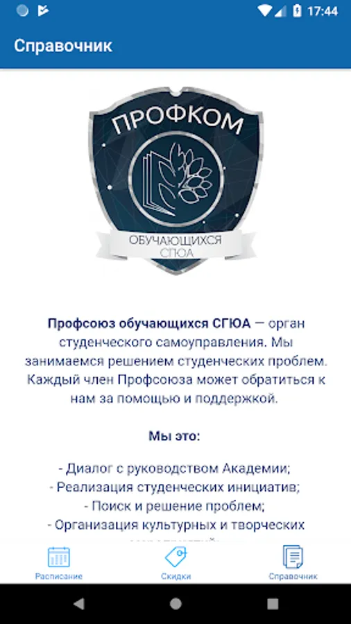 - a list of institutions with discounts and promotions of partners of the Academy,