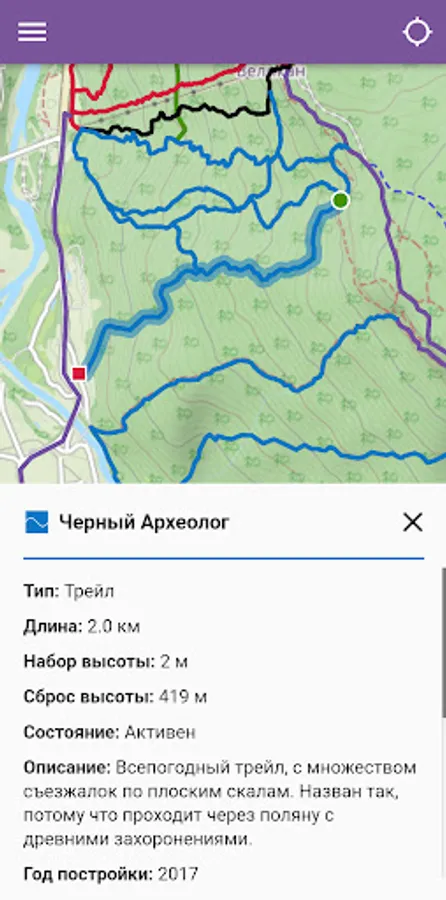 - Works offline. All trails remain available in the application regardless of the presence of the Internet. You can save in advance the necessary sections of the terrain map with the relief and infrastructure;