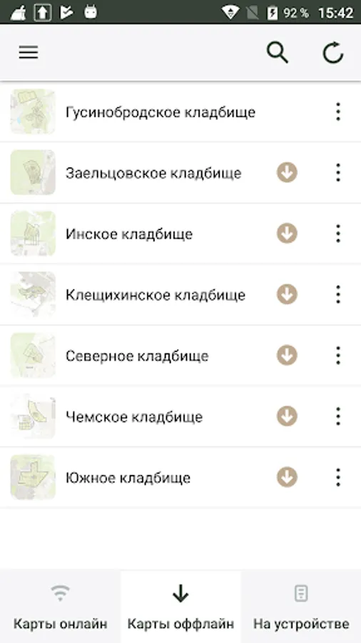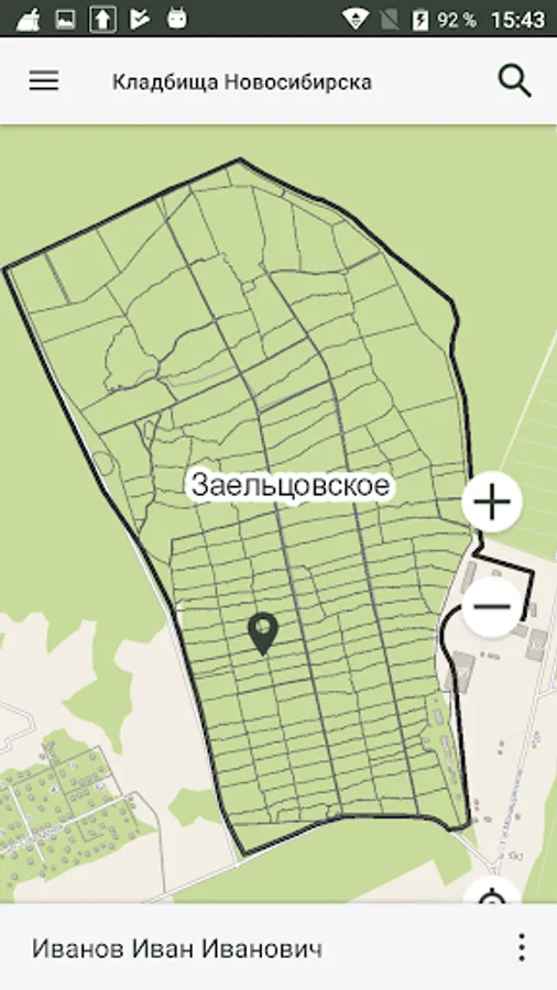 The app is provided for work with electronic online and offline maps of the following Novosibirsk cemeteries: Chemskoye, Gusinobrodskoye, Inskoye, Yuzhnoye, Kleschikhinskoye, Zayeltsovskoye, Severnoye.