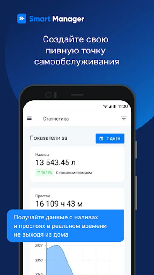 Data in daily monitoring will show summary information by device. For example, the number of empty kegs or non-working devices. View graphs of loading, downtime and dynamics in comparison with the previous period.