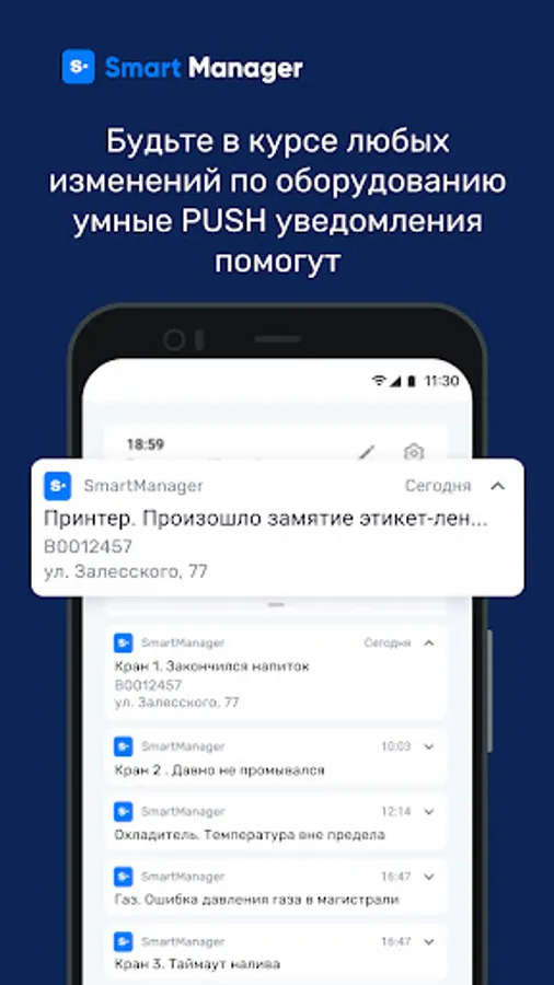 Out of drink? High cooler temperature? You will learn about the situation in real time by receiving push notifications with data by mistake and the address of the store.