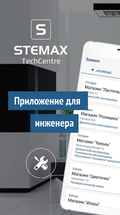 The STEMAX TechCentre mobile application is intended for technicians from security and installation organizations. The application is part of the STEMAX TechCentre cloud service and does not work separately from it. STEMAX TechCentre service simplifies the work of technical staff and helps to quickly respond to customer requests. Interaction between the mobile application for the engineer, the web-interface for the dispatcher and the cloud server is carried out via a secure communication channel.
