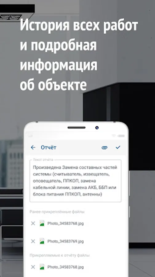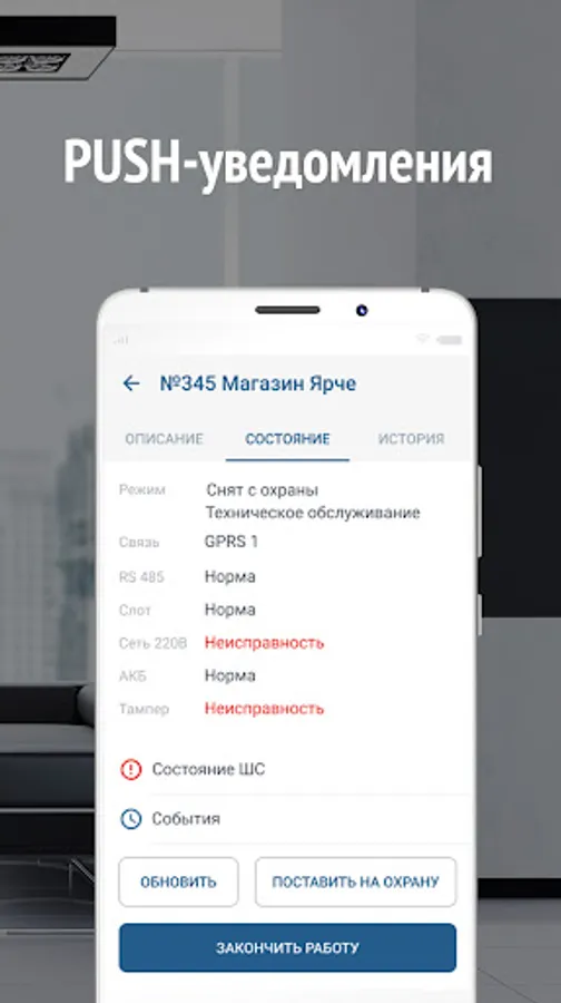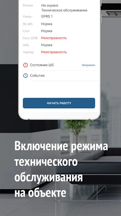 The application for the STEMAX TechCentre engineer is automatically loaded with customer requests that require a specialist visit to the serviced facility. The application form is adapted to the specifics of security and fire monitoring and contains everything you need to work at the facility. A technician through a mobile application will have access to detailed information about the equipment installed at the facility, contact persons, work history with attached photographs, facility plan and reports. During the work on the application, the engineer can change the security mode and put the object into the maintenance mode in real time (if the service administrator has set the necessary rights for the engineer). Calls and conversations between the dispatcher and the engineer are replaced with substantive messages in the context of the application. The engineer will instantly know about all changes that are made to the application using push notifications.