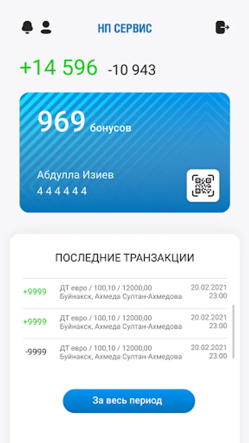The application of the petrol station network "NP Service" allows the client to quickly see his balance of bonuses, learn the latest news about the loyalty program.