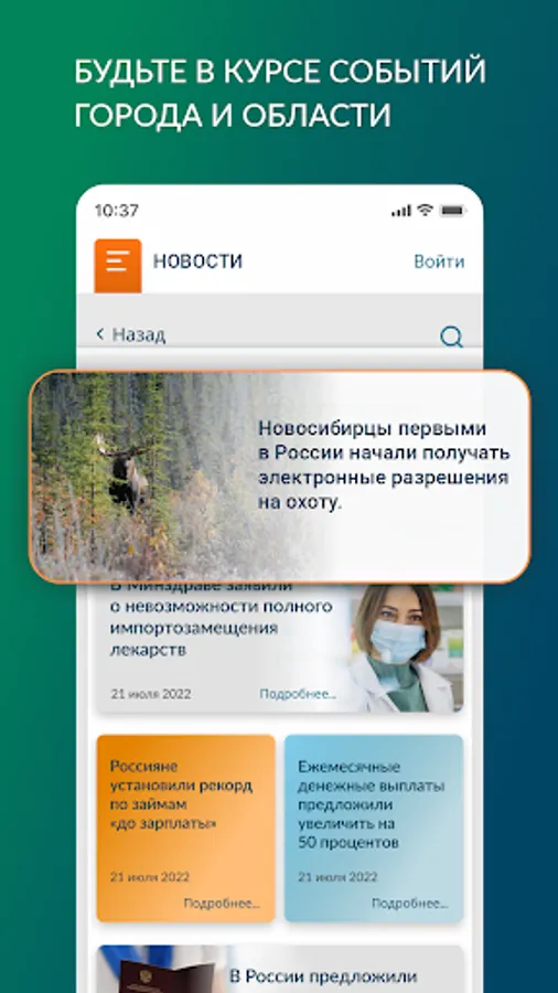 Mobile application of the state information system of the Novosibirsk region "Card of a resident of the Novosibirsk region".