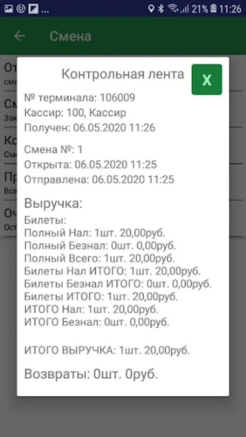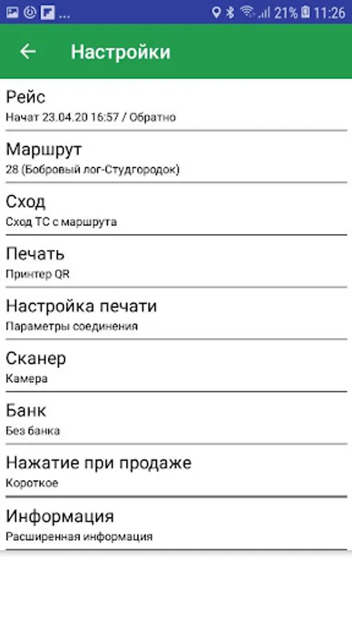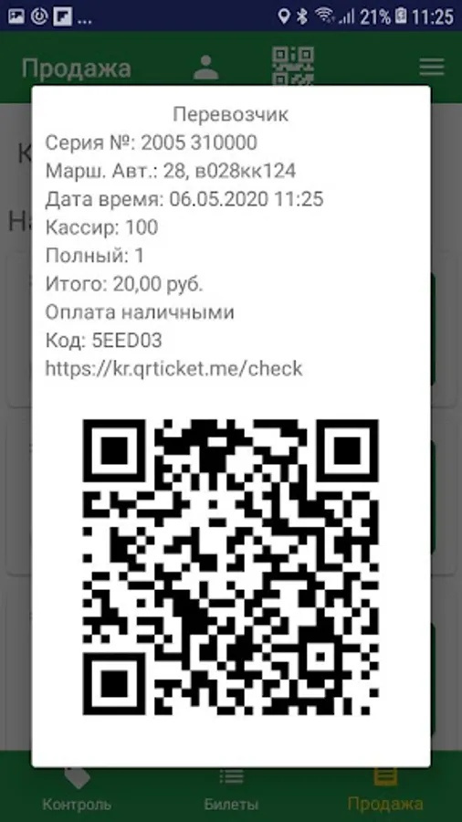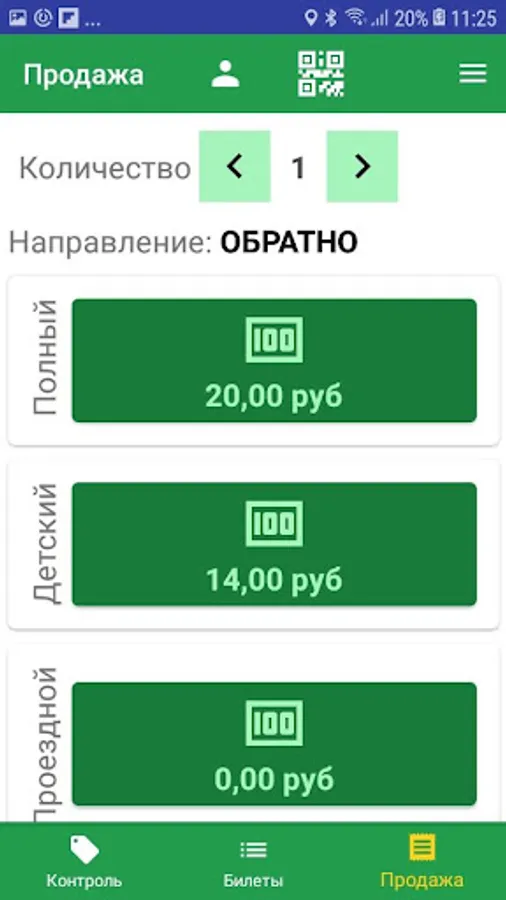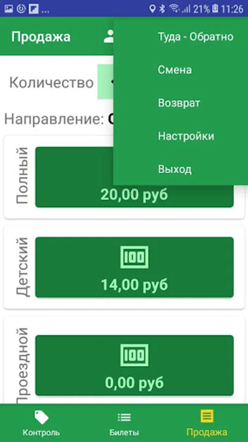 Printing tickets on a portable printer "ATOL" with bluetooth support or the formation of a QR ticket on the screen. Refund of tickets in the event of a vehicle leaving the route.