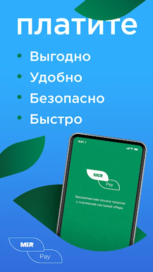 Mir Pay is a mobile application of the Mir payment system. With it, you can safely, quickly and conveniently pay for goods and services using your smartphone.
