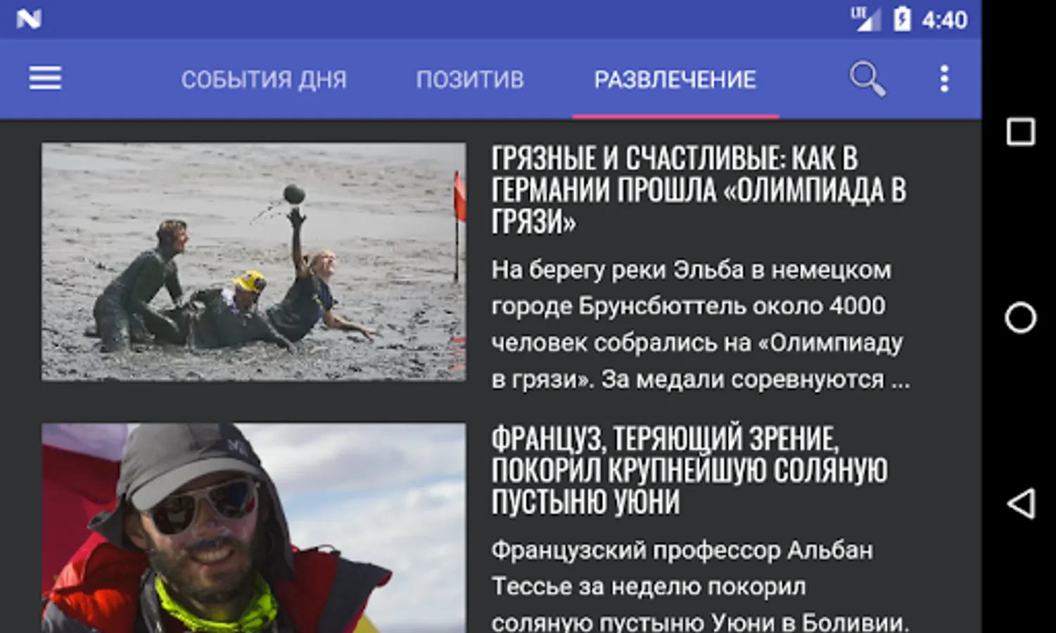 2. On the main page - the tape all the news of the day.