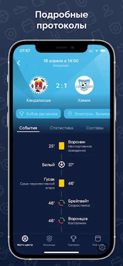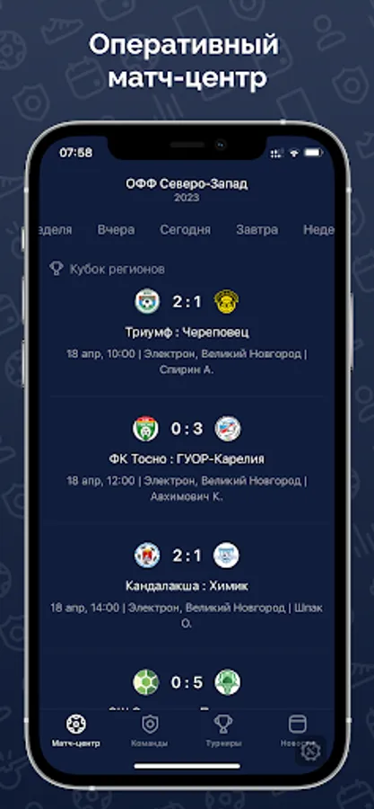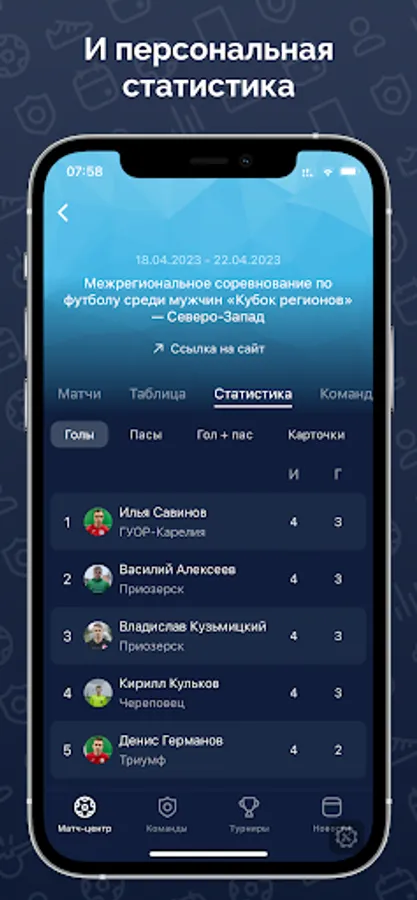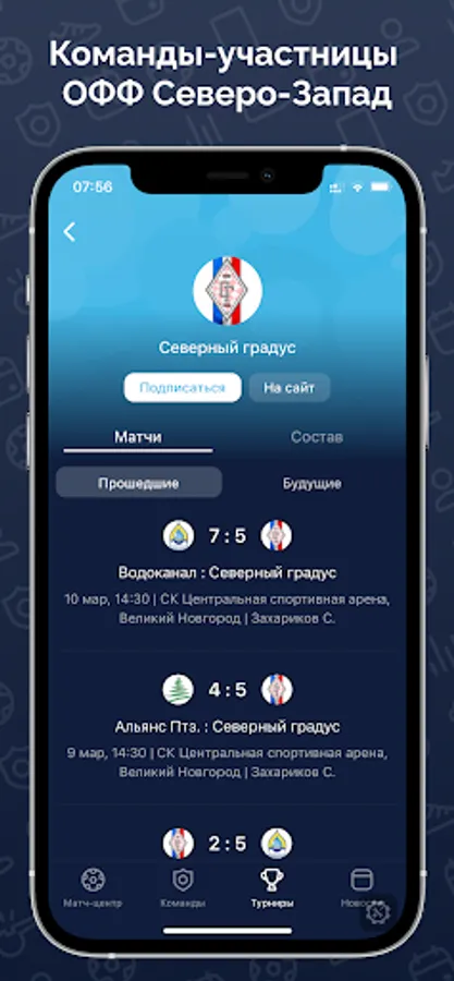 Everything about the tournaments of the Regional Public Organization "Association of Football Federations "North-West": match calendar and results, detailed match protocols, always up-to-date standings and personal statistics.