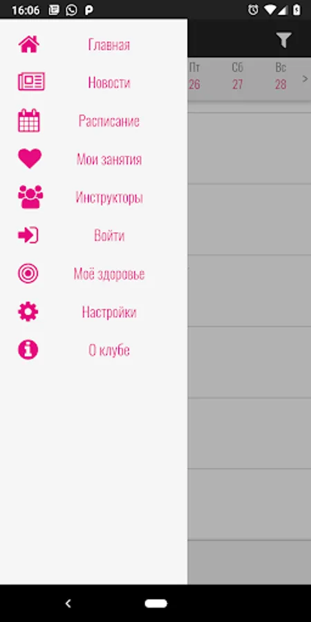 In the Fizruk application, you can view the schedule of group programs, sign up for training, watch information on the contract, share training with friends, communicate with trainers and more.