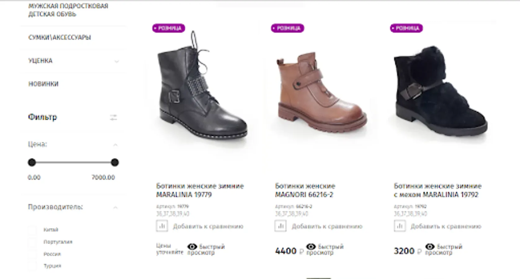 Progressive web application (PWA) for the online store of women's and men's shoes "Obuv plus", developed on the basis of the site obuv-tut2000.ru