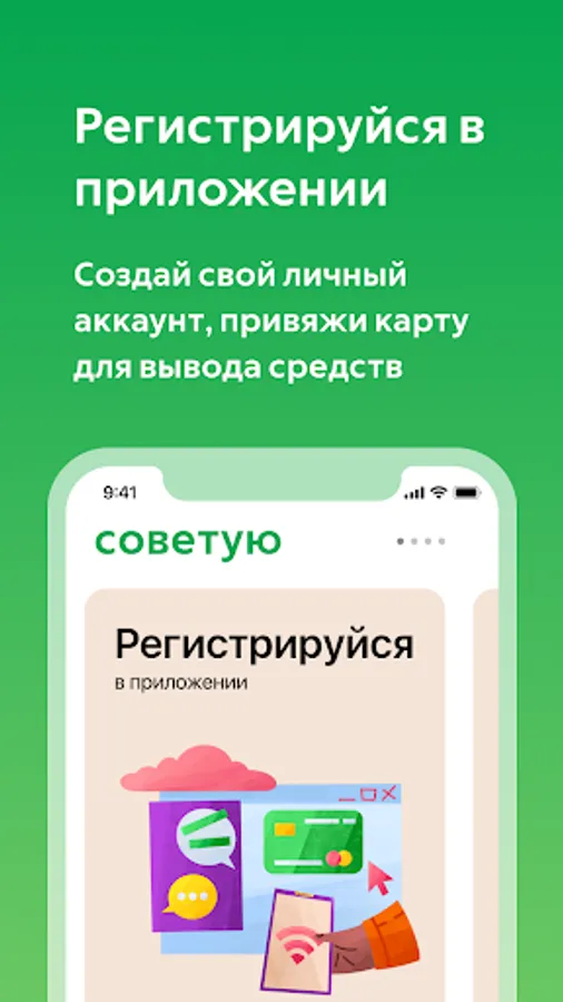 FAVORABLE CONDITIONS — using your smartphone and your contacts, you can get a tangible additional reward and withdraw money to the card!