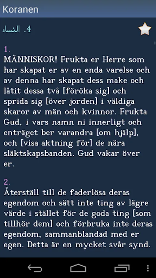 This is Koranen på svenska - Quran in Swedish (Knut Bernström). The Application is OFFLINE and does not need the internet connection.