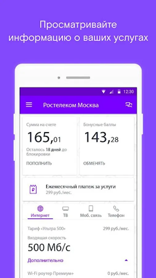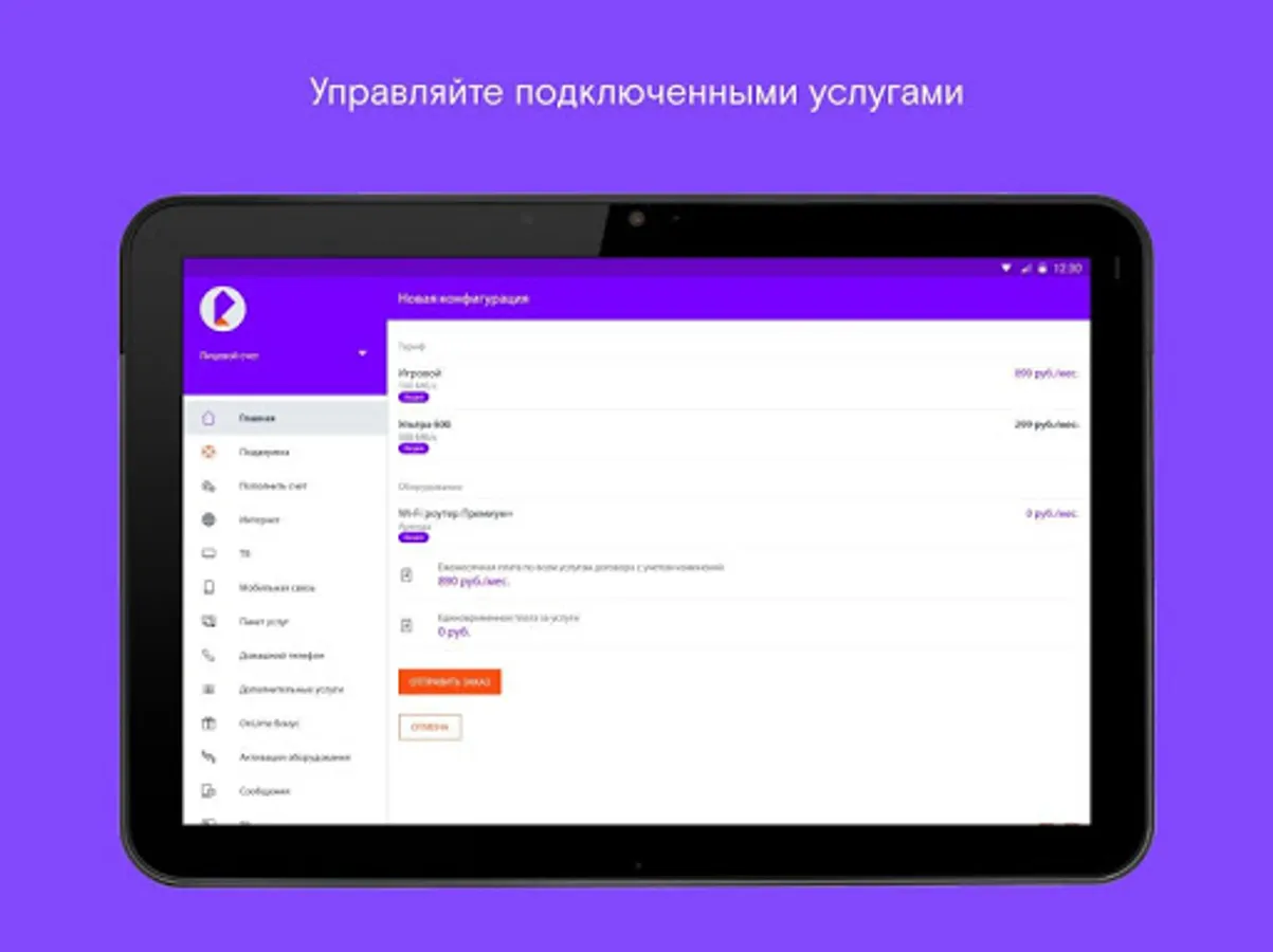 - manage services, connect additional options and channel packages