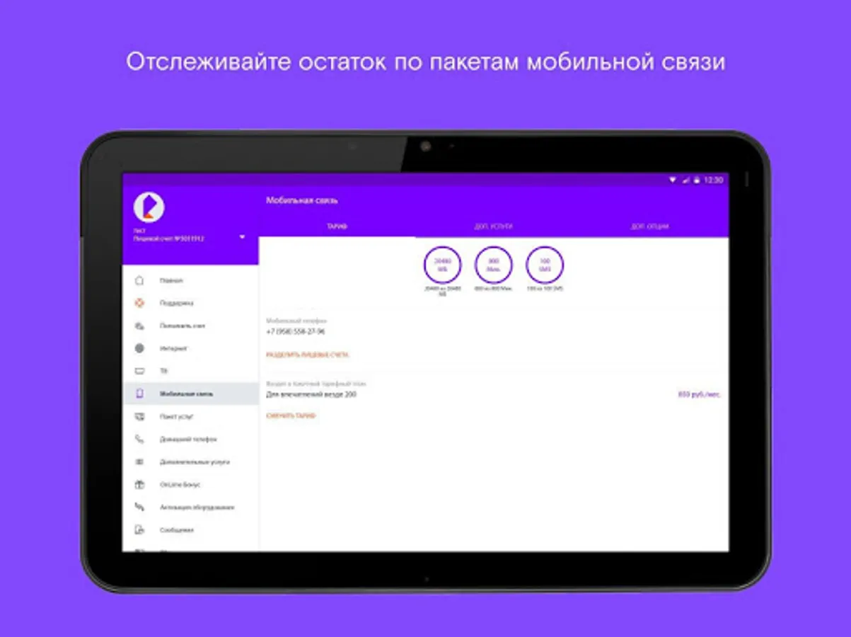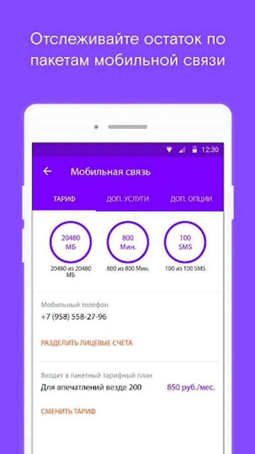 - track the balance of mobile communication packages, change minutes to gigabytes
