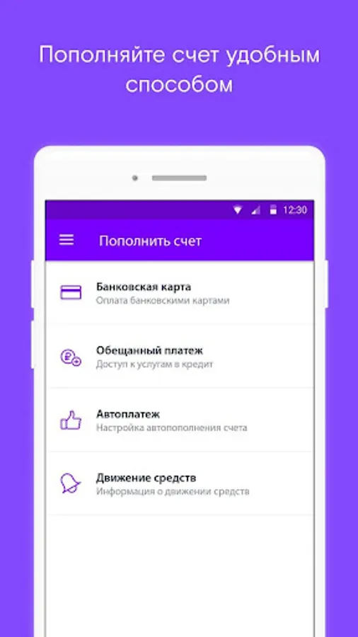 - quickly and conveniently replenish the account through the system of fast payments or by bank card