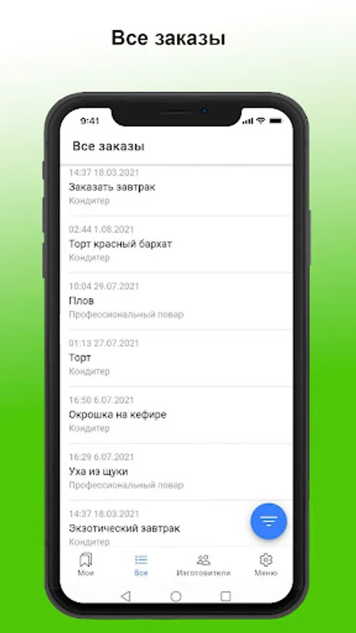 Our service can cover the need to earn money for everyone who has culinary skills. Millions of residents of Russia and other countries of the world will be able to order dishes from talented home chefs who are nearby, saving time for searching or preparing dishes.