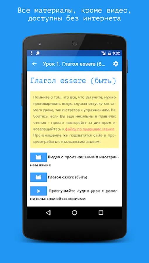 - all materials (except for the Video section) are located on your device and do not require an Internet connection to use.