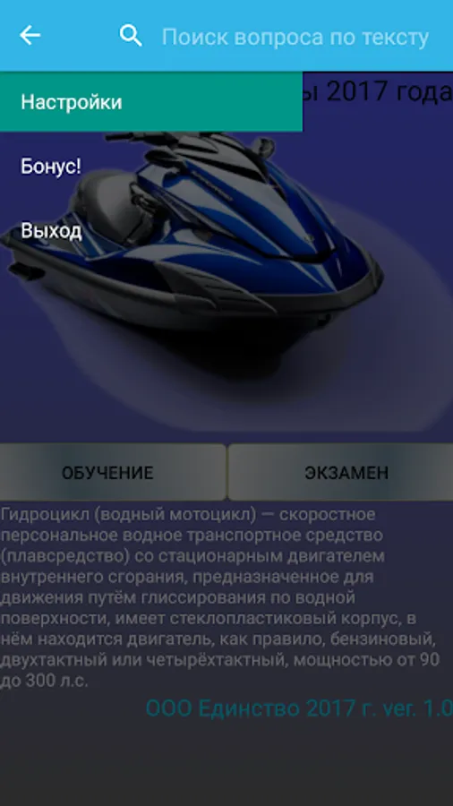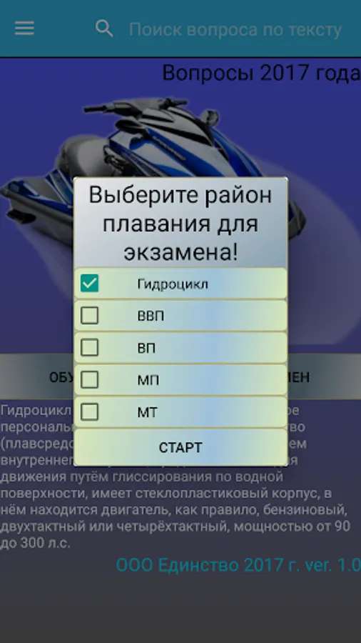 The program for preparing for the exam in the category “Hydrocycle” has been developed on the basis of the Administrative regulations on certification for the right to control small-size vessels on current tickets. Tickets previously issued to test theoretical knowledge on the exam GIMS are not currently used.