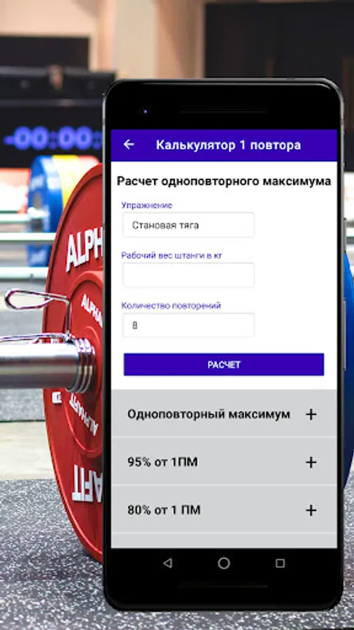 Also included is a one-rep maximum (1RM) calculator calculated using the Epley, Brzycki, Lander, and O'Connor formulas and a competition calculator using the Glossbrenner, Wilks, Schwartz/Malone formulas.