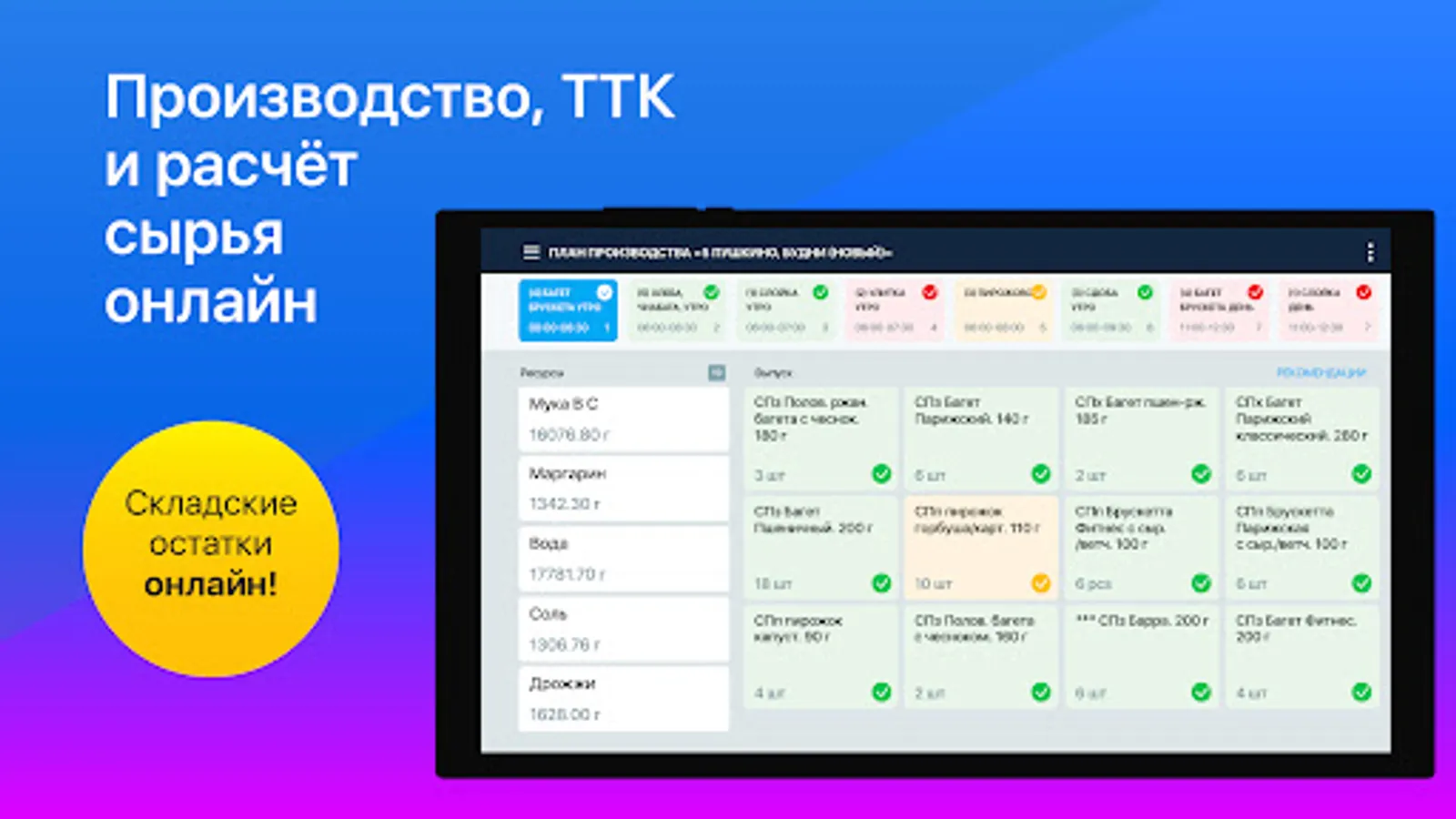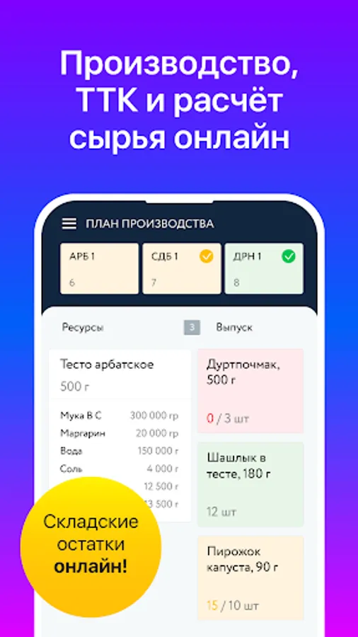 - production of products and the choice of a warehouse for the write-off of ingredients / goods;