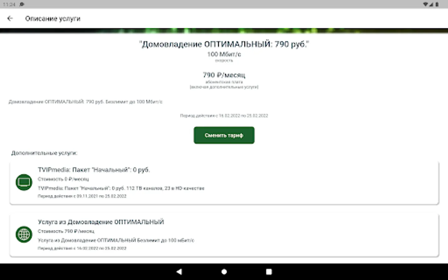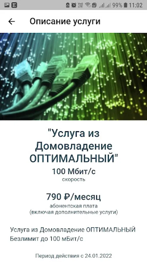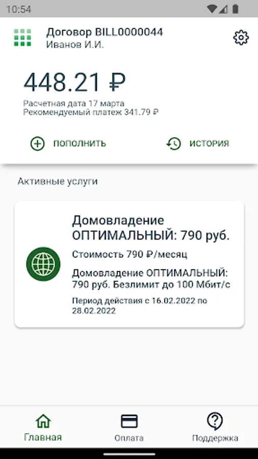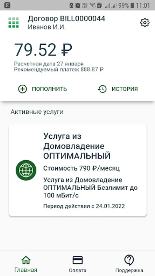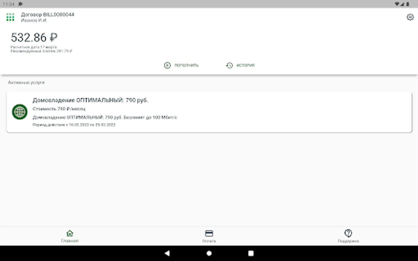 Mobile personal account for monitoring, managing and paying for services by subscribers of the Internet provider "Optik-Telecom Sochi".