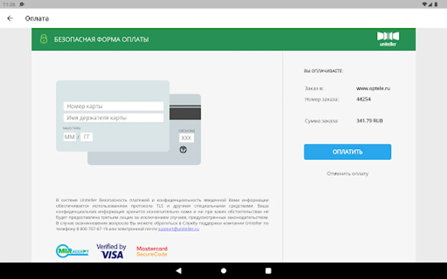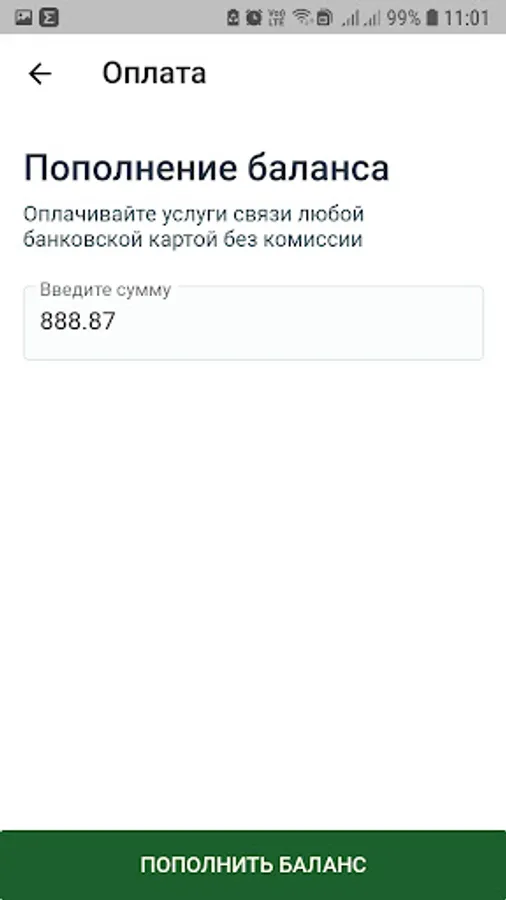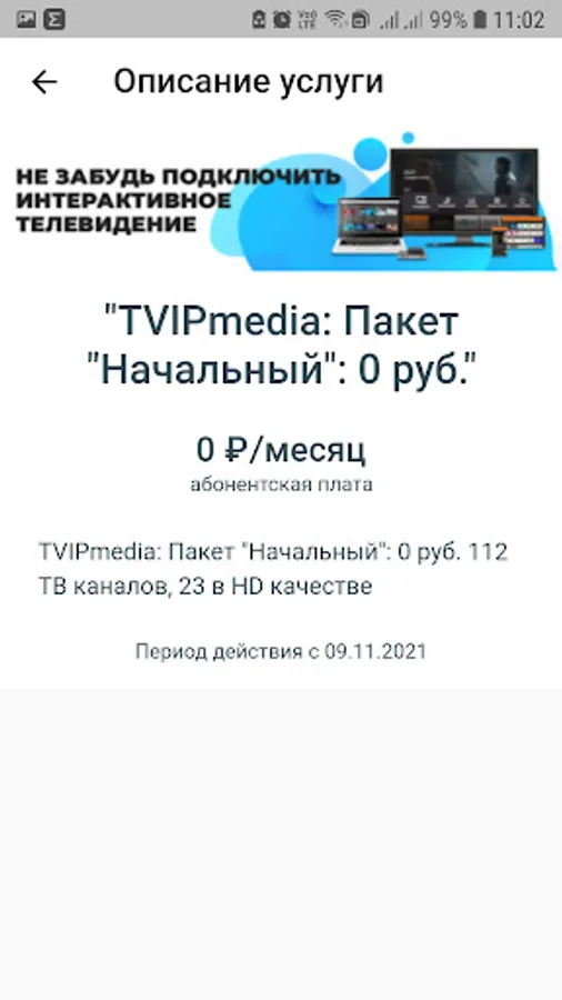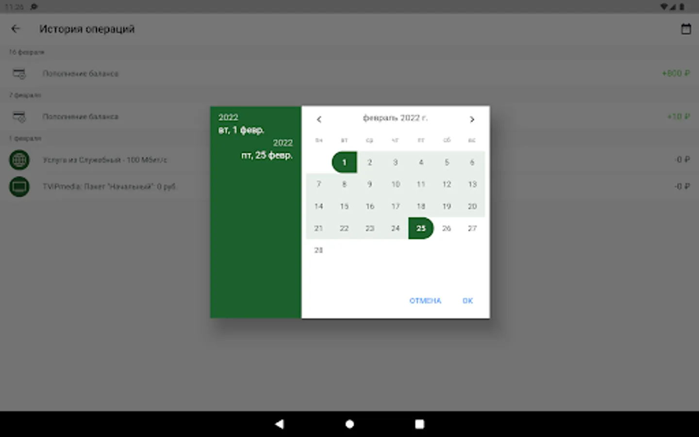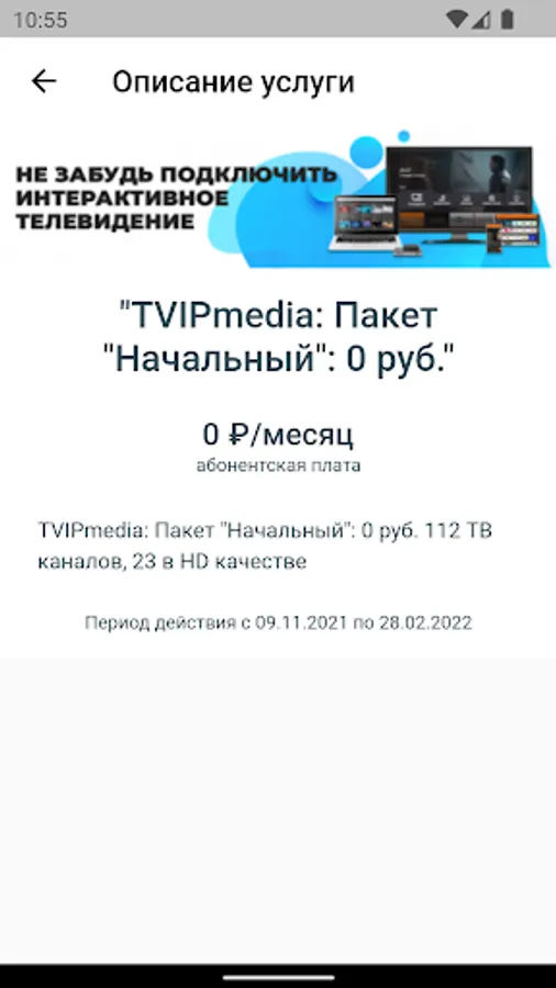 Mobile personal account for monitoring, managing and paying for services by subscribers of the Internet provider "Optik-Telecom Sochi".