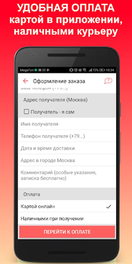 • Secure payment by bank cards in the application through the processing center.
