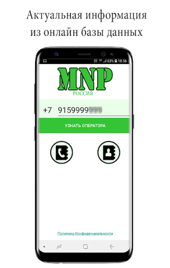 With this application, you can find out by phone number of the cellular operator (MTS, MegaFon, Beeline, Tele2, Yota, etc.) and its region. Always current information , because The application receives data from the online database.