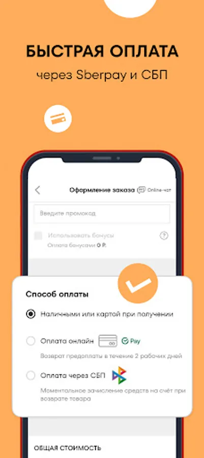 Make in-app purchases wherever you are: at home for a cup of coffee, on the road, or on your lunch break at work. And thanks to the different types of delivery, you can choose the option that suits you: delivery by courier, to a post office or pickup point, or pickup from the nearest store.