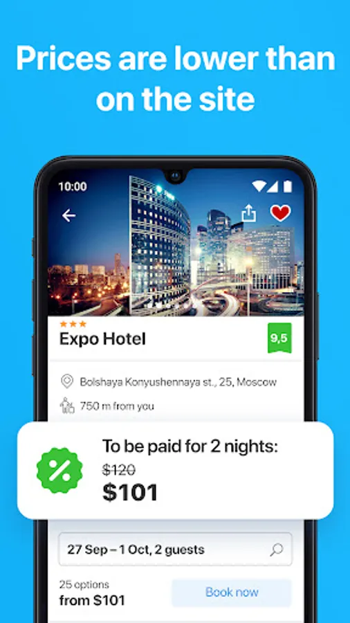 Now you can easily find the best hotel and hostels deals available wherever your trip takes you: just use the map. Bookings made simple as that, whether you are in Moscow or Saint Petersburg, stuck in a line or caught in a traffic jam.