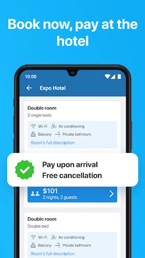 Make reservations and book hotels and apartments directly via the app. No credit card needed! Ostrovok.ru lets you choose among the greatest hotel and hostels deals, search and book properties in most exotic places all around the world. Make reservations in Crimea, Sochi, other regions of Russia and beyond.