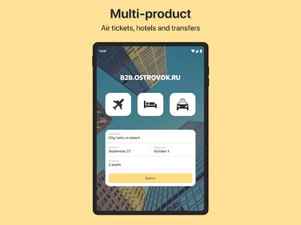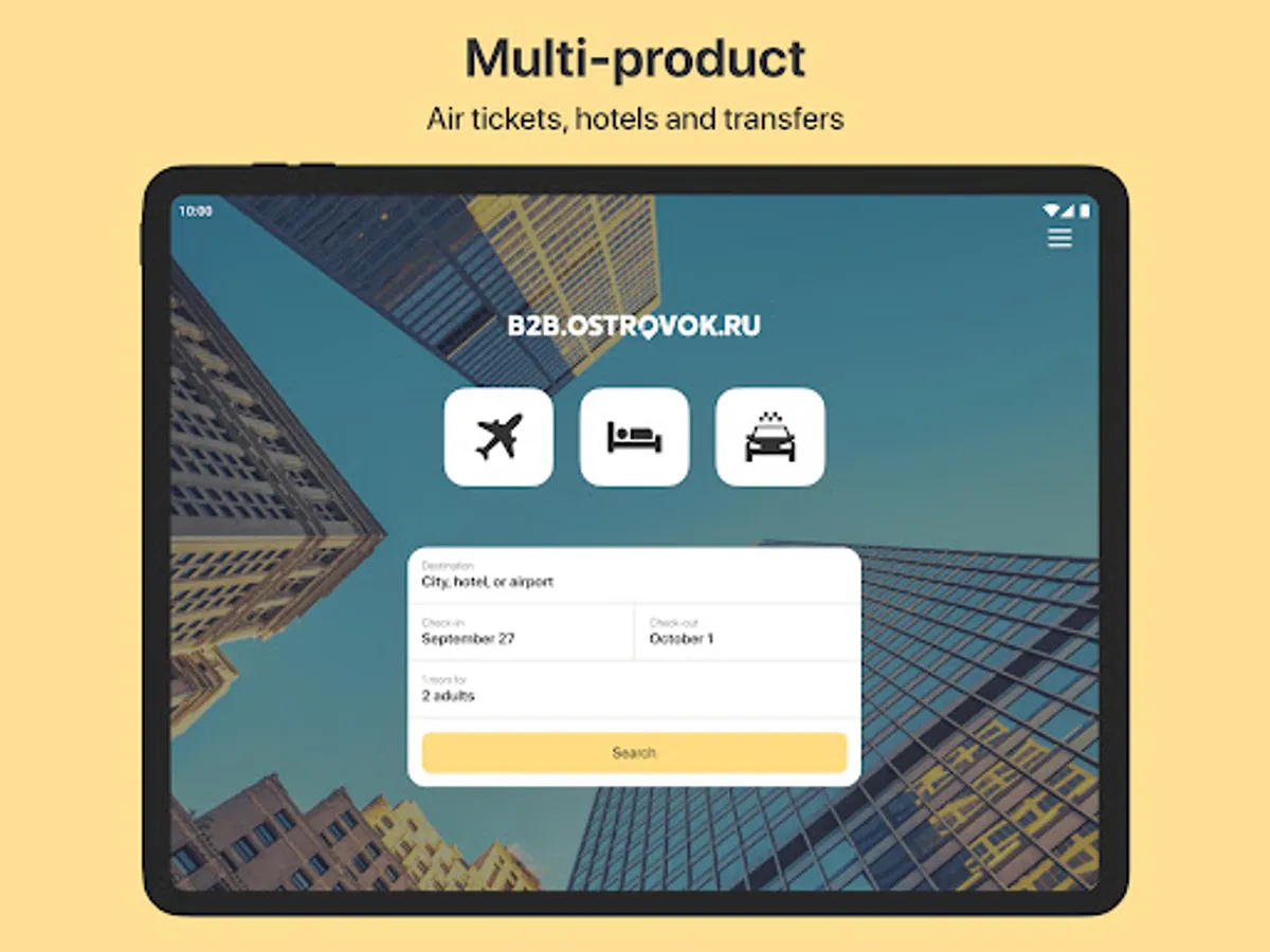 B2B.Ostrovok is an online platform for booking hotels, air tickets, and hire cars, as well as for arranging other travel services. It is present on 101 markets and in 14 languages for travel professionals.