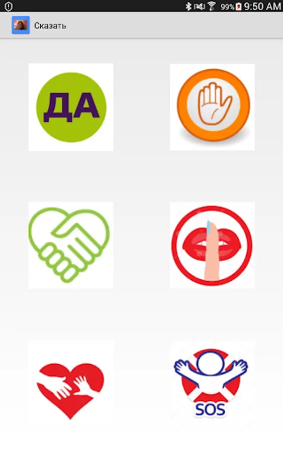 Application created to help in communicating to children or patients of the 8th species, who can not speak. When you click on one of the buttons pronounced pre-recorded phrase.