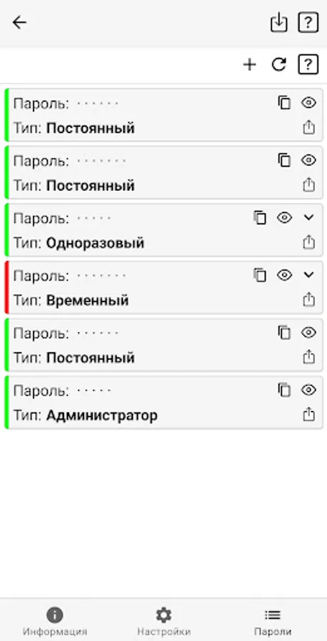 - control of controllers and locks using a system of passwords (permanent, single-use and temporary);