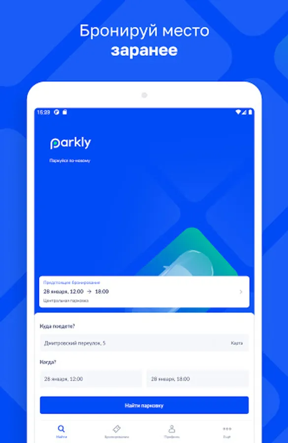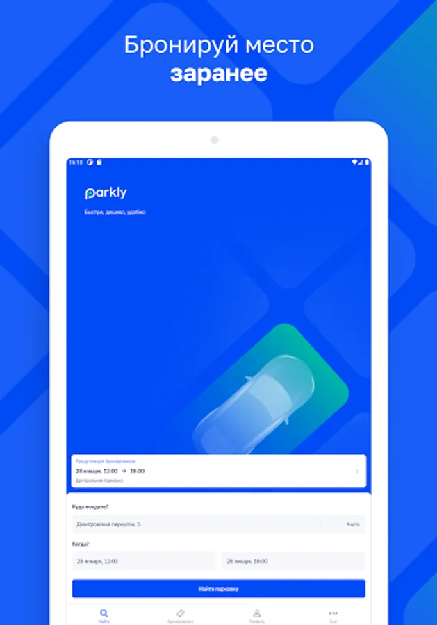 No more driving in circles through the narrow lanes of Moscow in search of a free space. At Parkly, you can pre-book a parking space at a convenient time for you in secure parking lots. Pay for parking in a mobile application, go from booking to navigator and use the application to enter and exit.